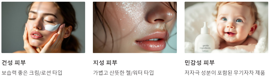 - 건성 피부 → 보습력 좋은 크림/로션 타입