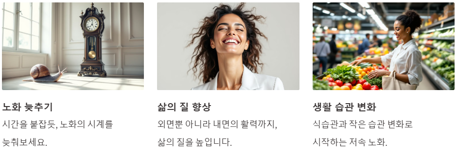 ✅ 저속 노화 = ‘단순한 동안’이 아니라 ‘삶의 질을 높이는 것’