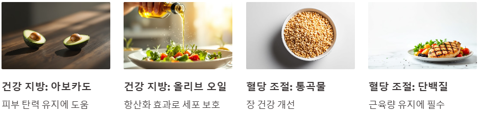 혈당이 급격하게 오르면 인슐린 저항성이 증가하고, 결국 노화가 촉진될 수 있어요. 그러므로 혈당 조절이 가능한 음식을 선택하는 것이 중요합니다.