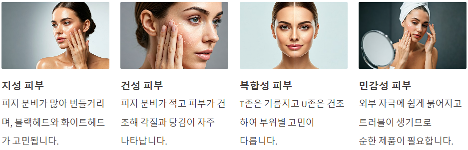 - T존(이마·코)은 기름지고 U존(볼·턱)은 건조함